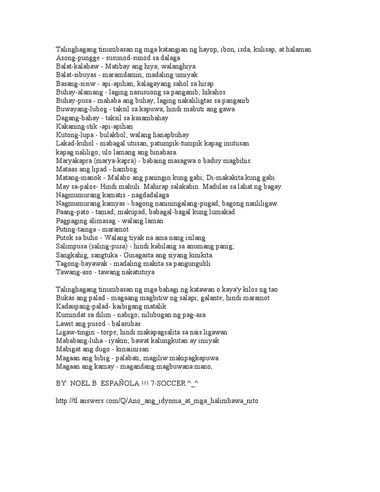 Talinghagang Tinumbasan Ng Mga Katangian Ng Hayop
